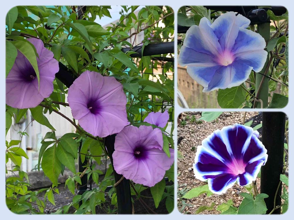 この朝顔どんどん蔓が伸びてたくさん咲いています♪