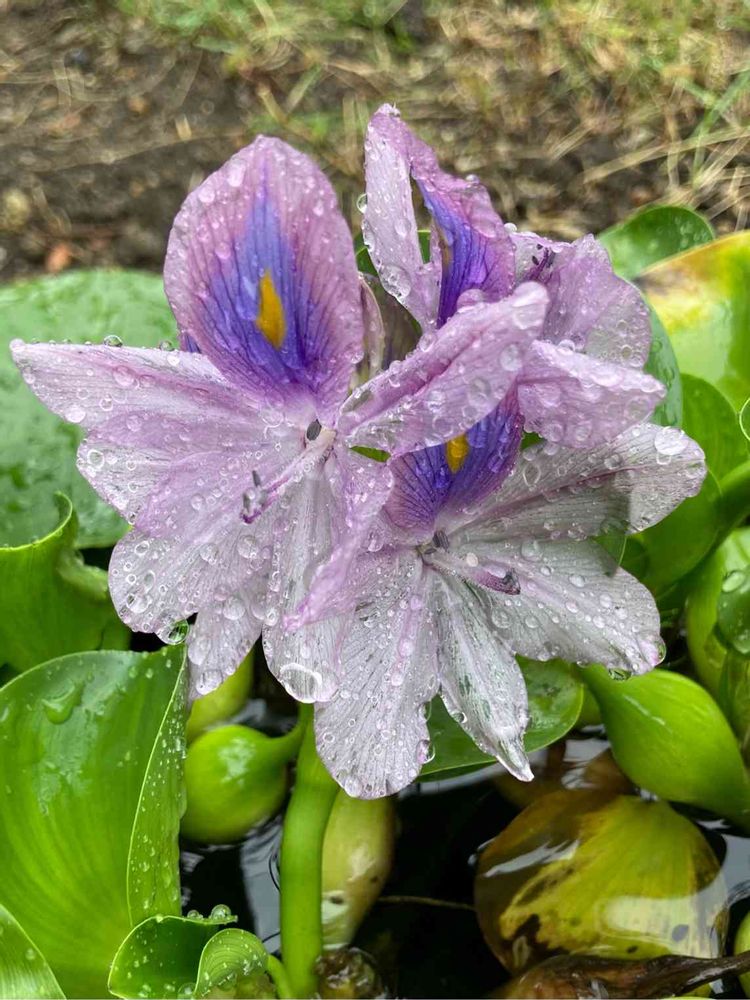急な雨☔️の中(あっ 投稿中に雷も) ホテイアオイが咲いてました💜