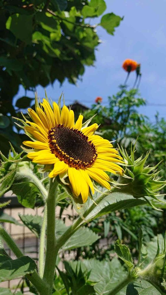 マリーゴールドに背丈を抜かされたひまわり🌻