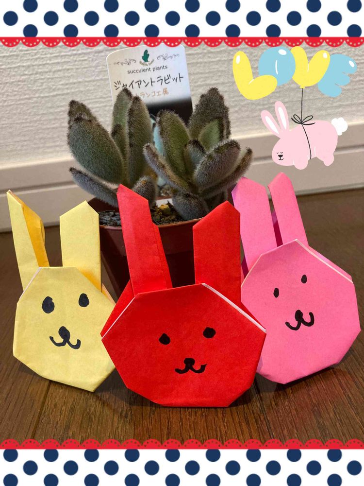 今、息子は折り紙にハマっててそれで作ってくれましたー🐰 ジャイアントラビットさん暑さに負けずピンピンしてます♡嬉しい"((∩´˘`∩))"