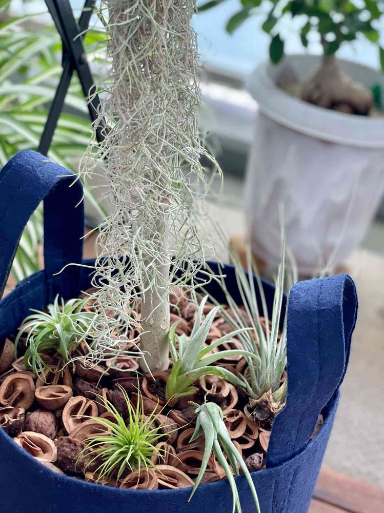 クルミの殻は誰かの真似をしてみたものなんです😆エアプランツは初心者ですが、大きくなるかどうか楽しみにしています😊