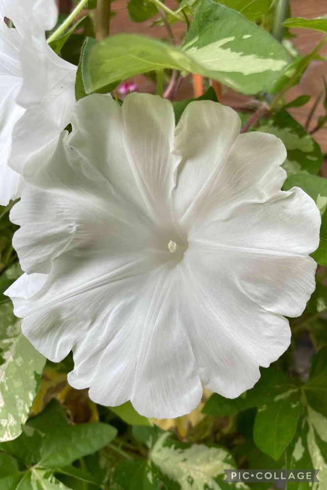 毎朝、朝顔を見るのですが いつも白色のお花が咲くと綺麗な丸い形じゃなく 崩れているのですが本日は綺麗な丸の形で咲いてくれました♡♡