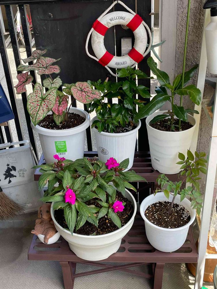 ベランダのプランターが増え、洗濯物を干しているとプランターで転びそうになるため、ミニ花台を購入しました❣️