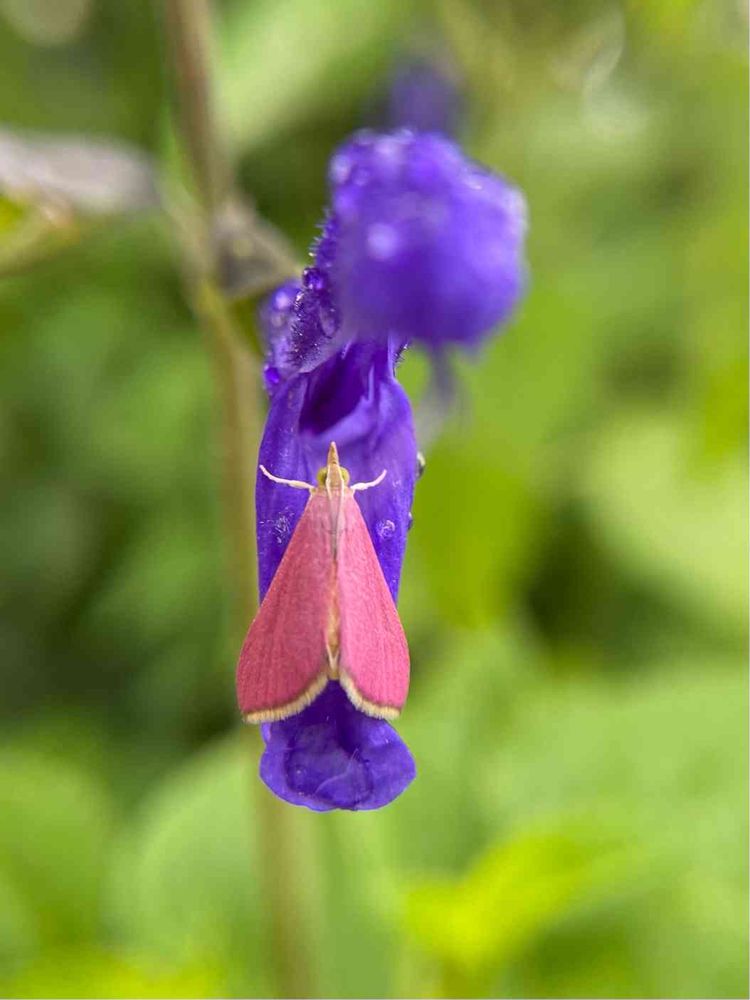 紫のお花にピンク色の蛾✨✨ステキな一枚ですね✨✨