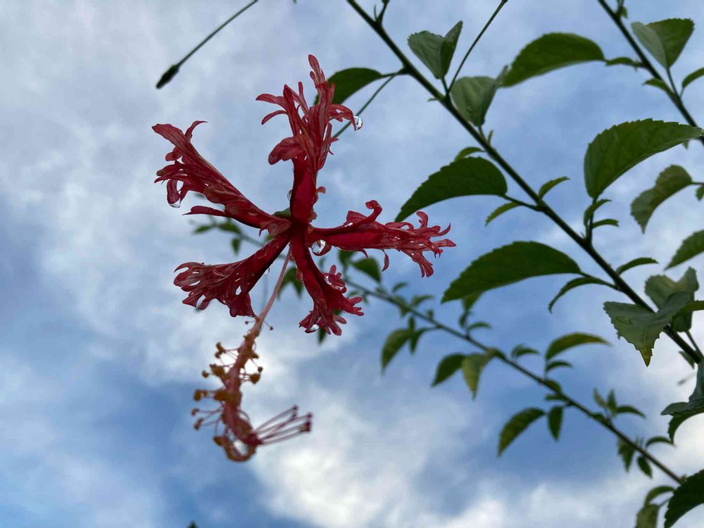 夕立ちにうたれてションボリなフウリンブッソウゲ