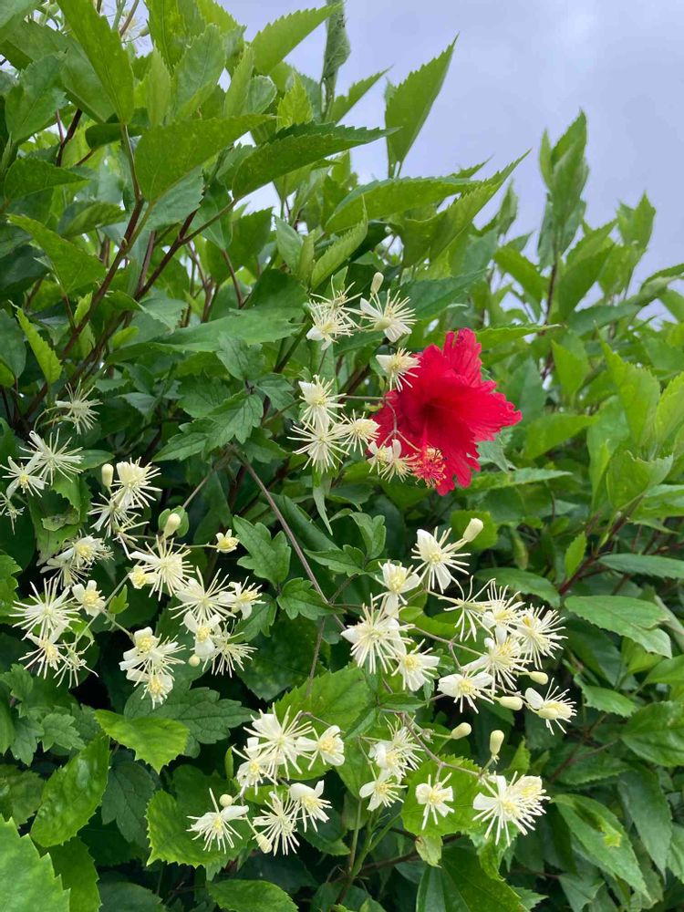 リュウキュウボタンヅルの側で遠慮がちに咲く赤花🌺