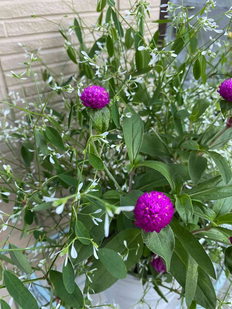 丸い千日紅に 涼しげなユーフォルビアさん 綺麗ですねー💕