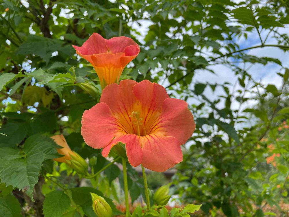 オレンジ色の花,ノウゼンカズラ*,近所のお花の投稿画像