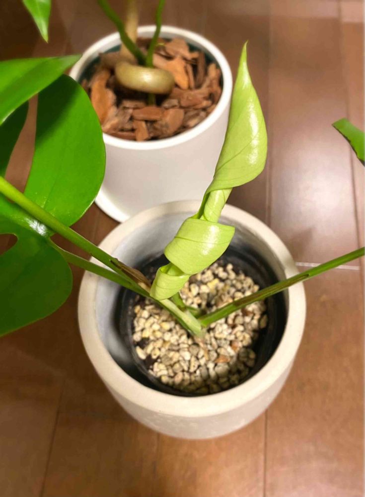姫モンステラのドリルが、ゆっくり開きはじめてる🥰