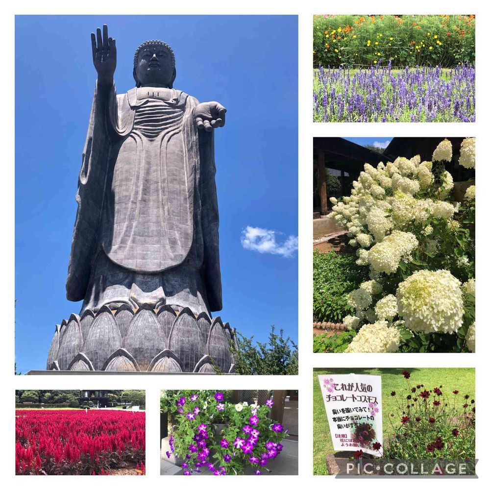 地上120メートル世界一の大きさの大仏です❗庭園のお花もとても綺麗でした。