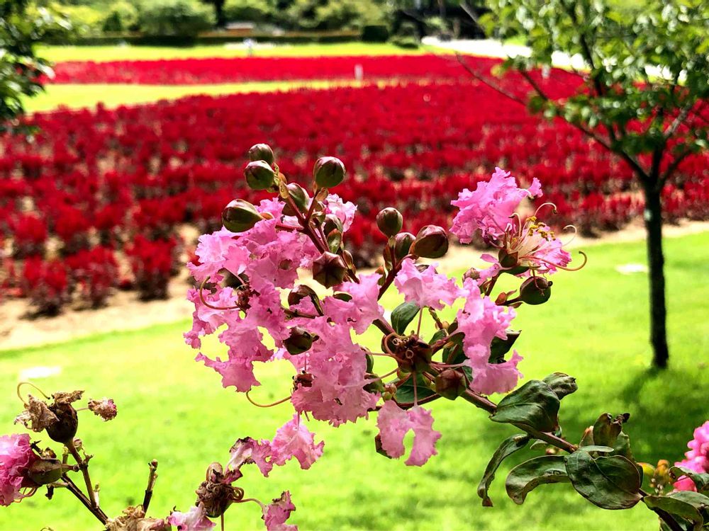 サルスベリとケイトウが鮮やかでとても綺麗でした❤(。☌ᴗ☌。)