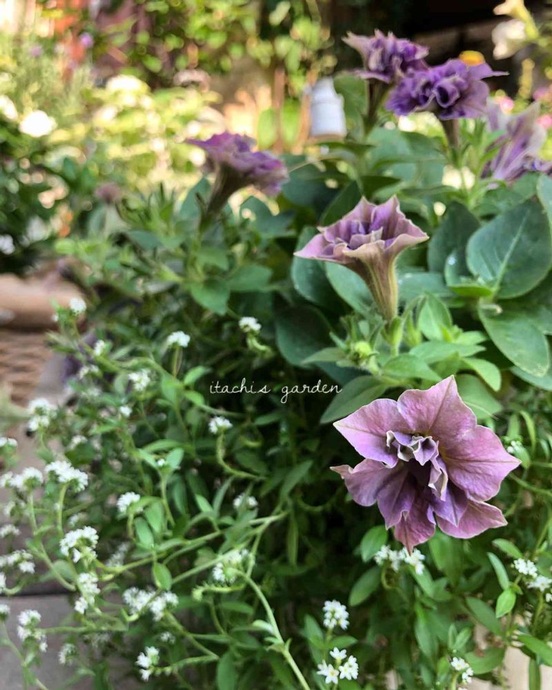 4月に定植したペチュニアジュリエットとヘリオトロープの寄せ植え💜