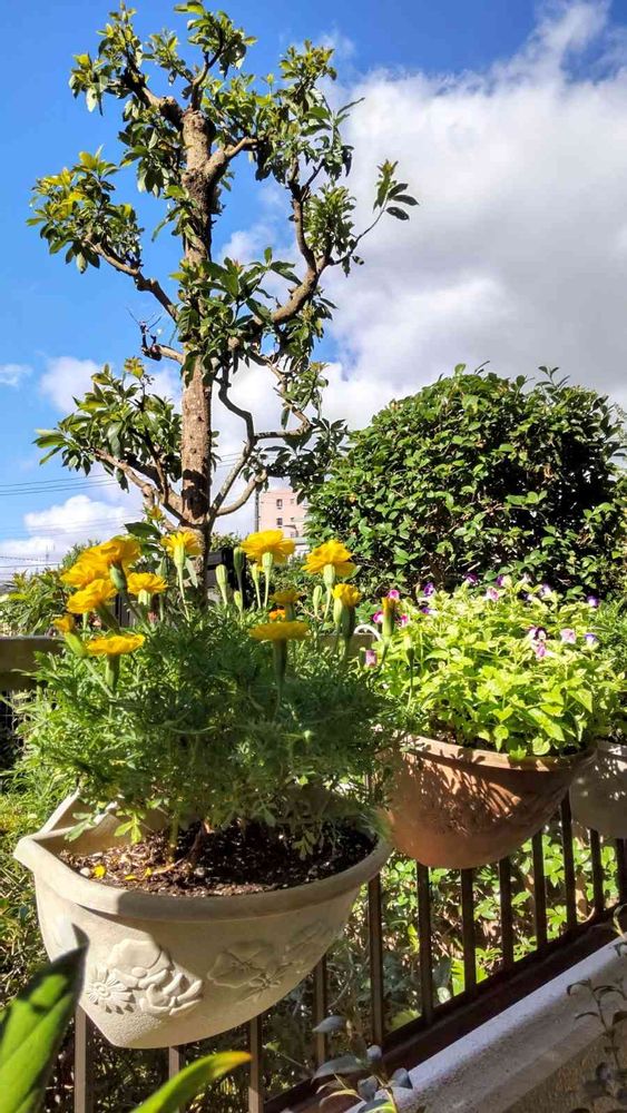 マンションの小さなお庭 午前中は半日陰で午後は西陽 西風も強くて、斜めになりがち😓 ズボラなのでこぼれ種で増える、植えっぱなし放置でも強いお花ばかり育ててます。😀 まだまだ園芸初心者🔰です