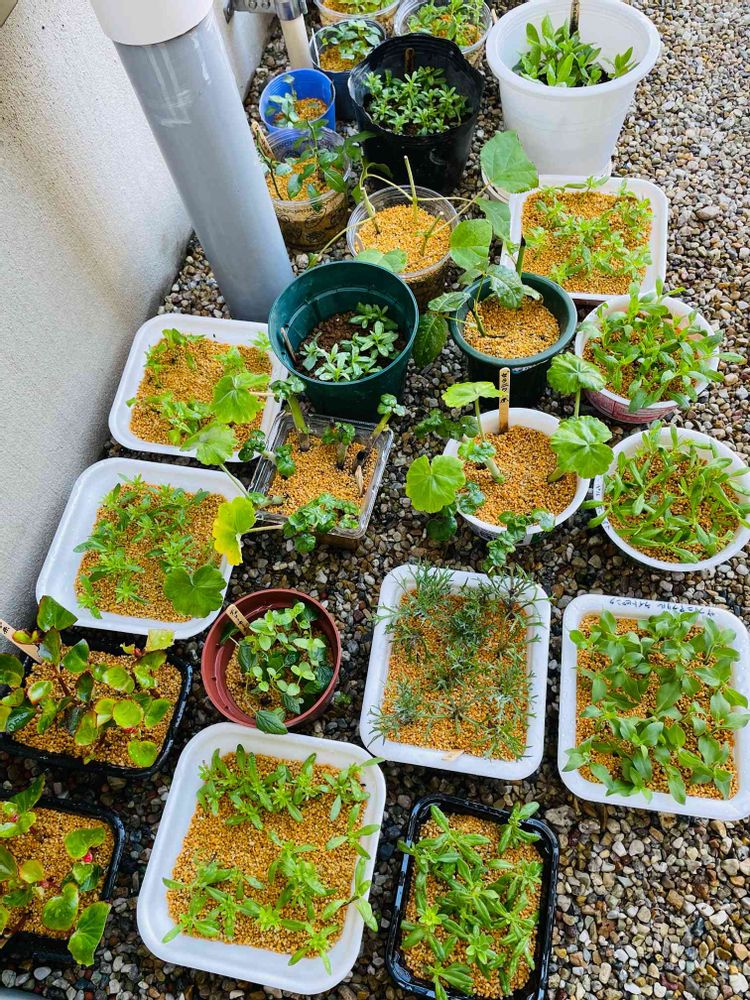 梅雨時期の方が付きやすいと聞いて6月に入ってからもせっせと挿し芽をしていたけど昨年冬越しして育てていた大好きなももいろハートが梅雨で弱り、株も挿し芽も全滅😭サフィニア系は梅雨時期はなかなかうまく付かなかった💦6月末に薔薇やアナベルの挿し芽に初挑戦し、今のところ葉っぱは元気☺️それ以降挿したものも今のところ元気。1ヶ月以上経ったものはぼちぼち発根チェックして鉢上げした方がいいのかな。挿し芽コーナーは東側の日陰で管理中🌱