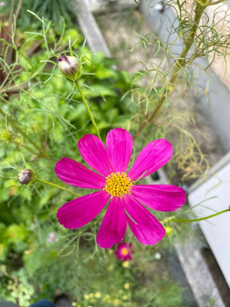 ダイソーさんの種を花壇に直播きしたコスモス。薄いピンクの他に濃いピンクのコスモスも咲いてきた☺️