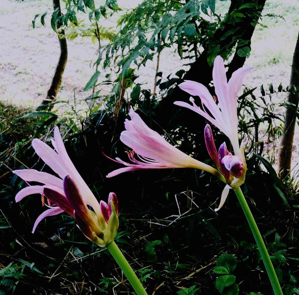 家庭菜園(京都丹波亀岡)脇に、夏スイセンが開花しました。