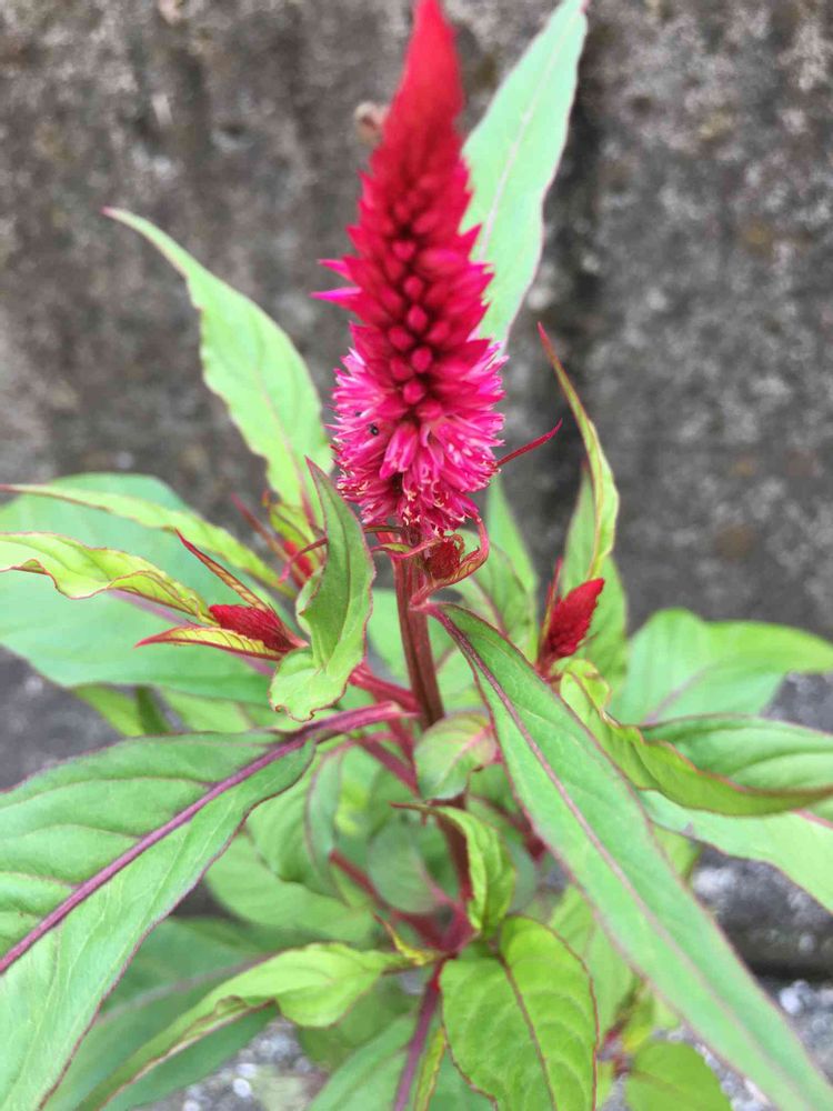タネががこぼれて道路の隙間から咲いているケイトウの花🌸