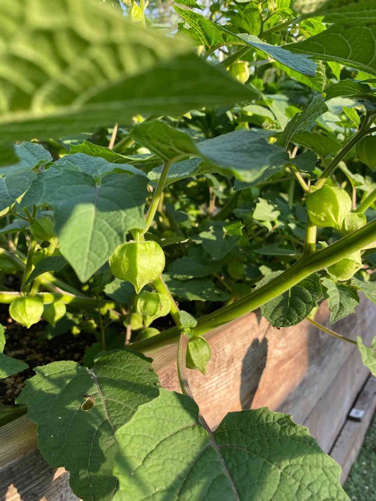 我が家も共同庭園と自宅で紫鬼灯育ててますが縦にどんどん伸びております…花はいっぱい咲いてるのですが、実になるのかな〜。こんなに実がついてて収穫楽しみですね🤗私も食用鬼灯、大好きです❤️