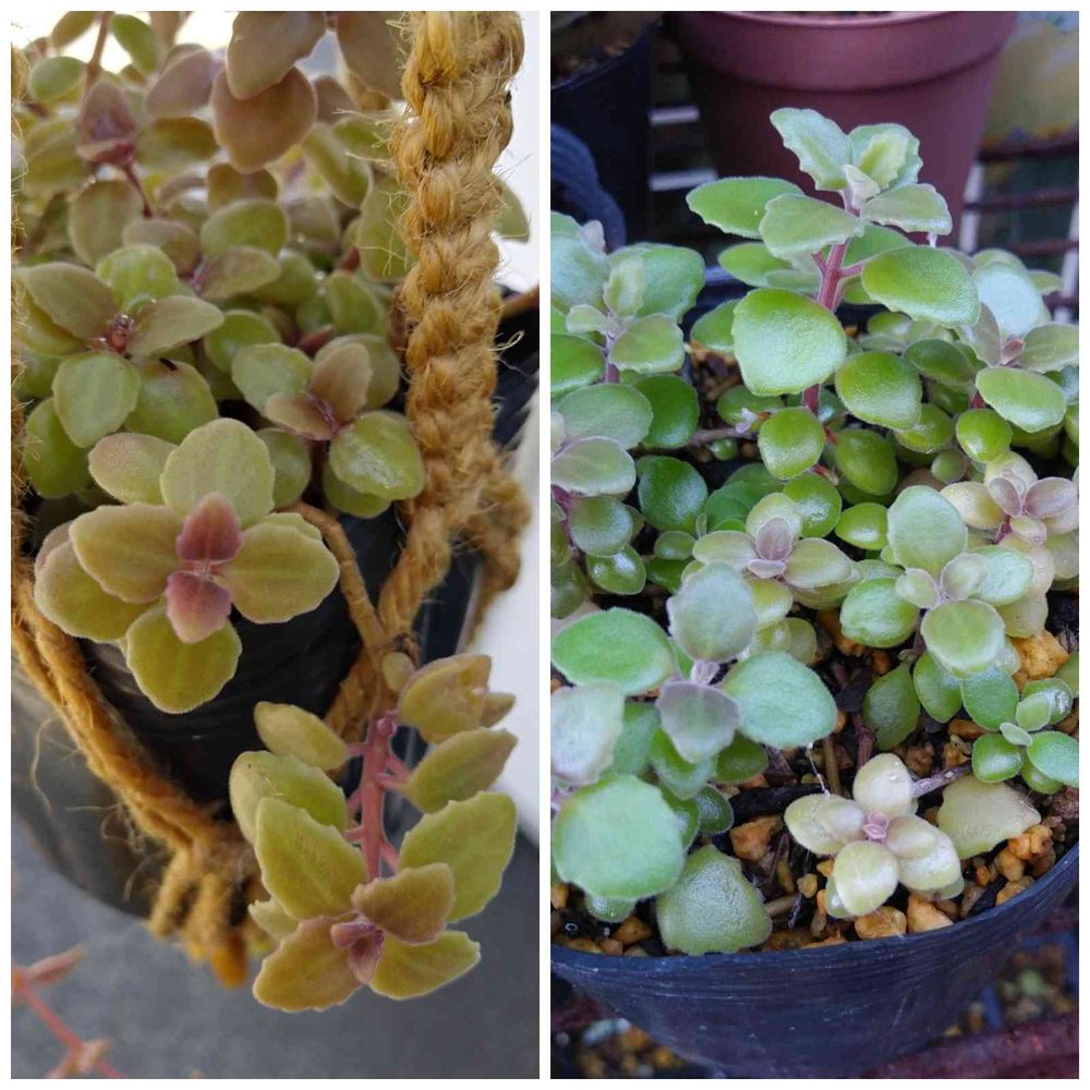 左の子、半日直射があたる場所にいる子。少し色付いて模様も見えます。