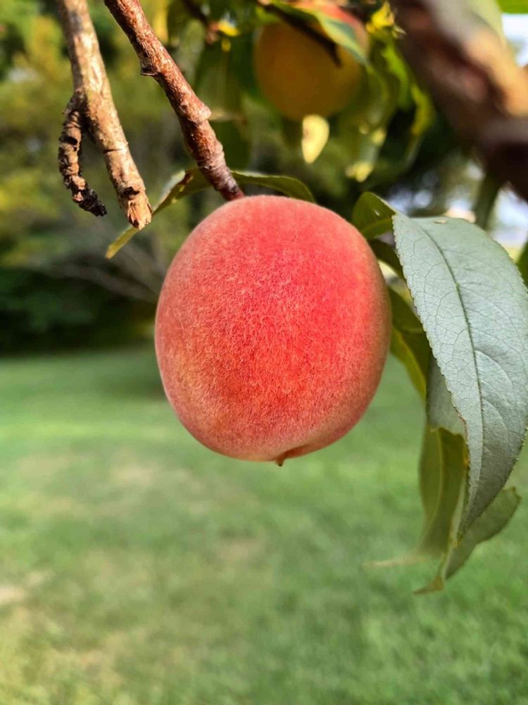 今年はサボって摘果しなかったので実は小さめ。でもネットをかけていたのでリスとの争奪戦には至っておらず、木で熟した桃を収穫できそうです♪やったー🙌リス🐿に勝った(笑)🤣