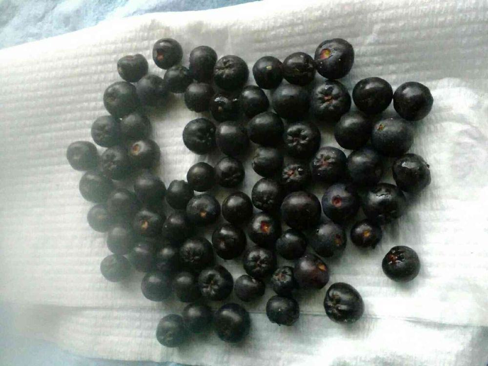 アロニアの実50gやっと、これを冷凍解凍を何回かして渋味をとり、食するとよいとかふむふむ