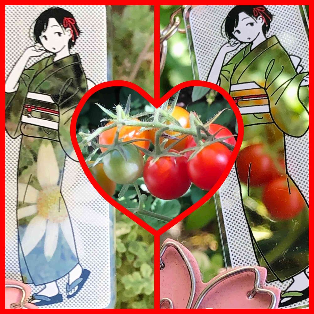 今、庭で色付いているのはトマト🍅だけだから、そして西陽に輝いてたので❣️