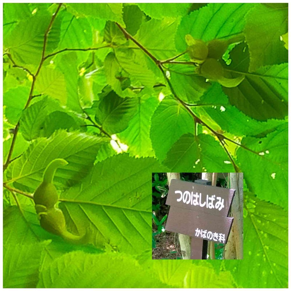 自然教育園をお散歩中、カメラを持ったおじさまが「これは珍しいよ、カシューナッツみたいな味で美味しいよ。角が生えてるみたいだから、ツノハシバミというんだよ🐮」と教えてくれました。