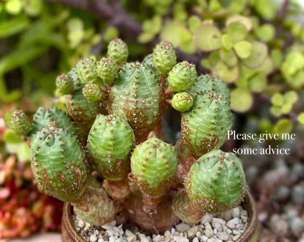 そのまま大株にすると素晴らしいのですが、増やしたい時は子株を外し、切り口から出る白い乳液を乾かしてから、新しい用土の上にポンと置いてやれば発根してくると思いますよ。ユーフォルビアはたいていその方法で増やせます。根が出てくるまではジメジメさせないのがポイントです😉