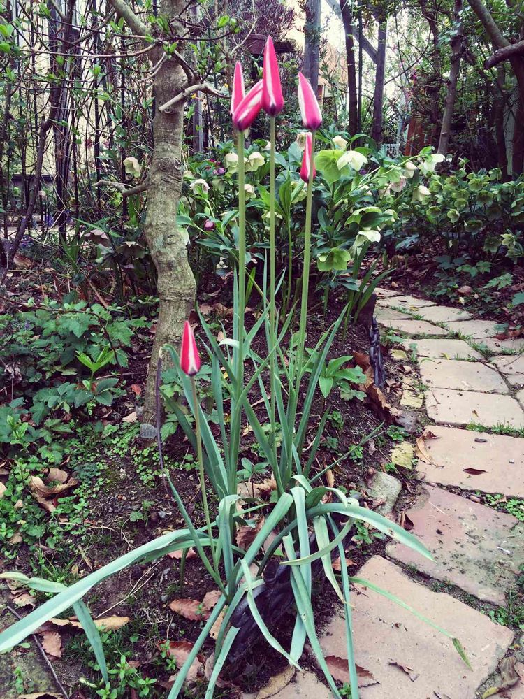 小さな庭,チューリップ レディジェーン,花のある暮らしの投稿画像