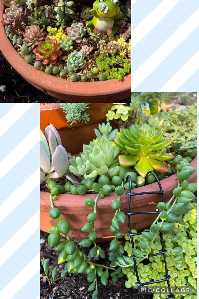 pic5月1日に真似っこして寄植えした時↖️1段目にグリーンネックレスを タラリンとさせたかったので挿してみました