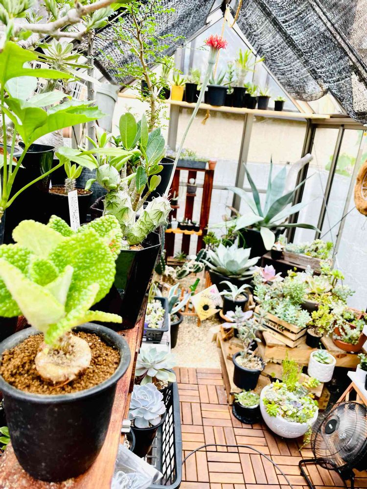 夏の温室は少し心配しましたが、サーキュレーターと遮光で快適に夏越ししてくれそうです🎵