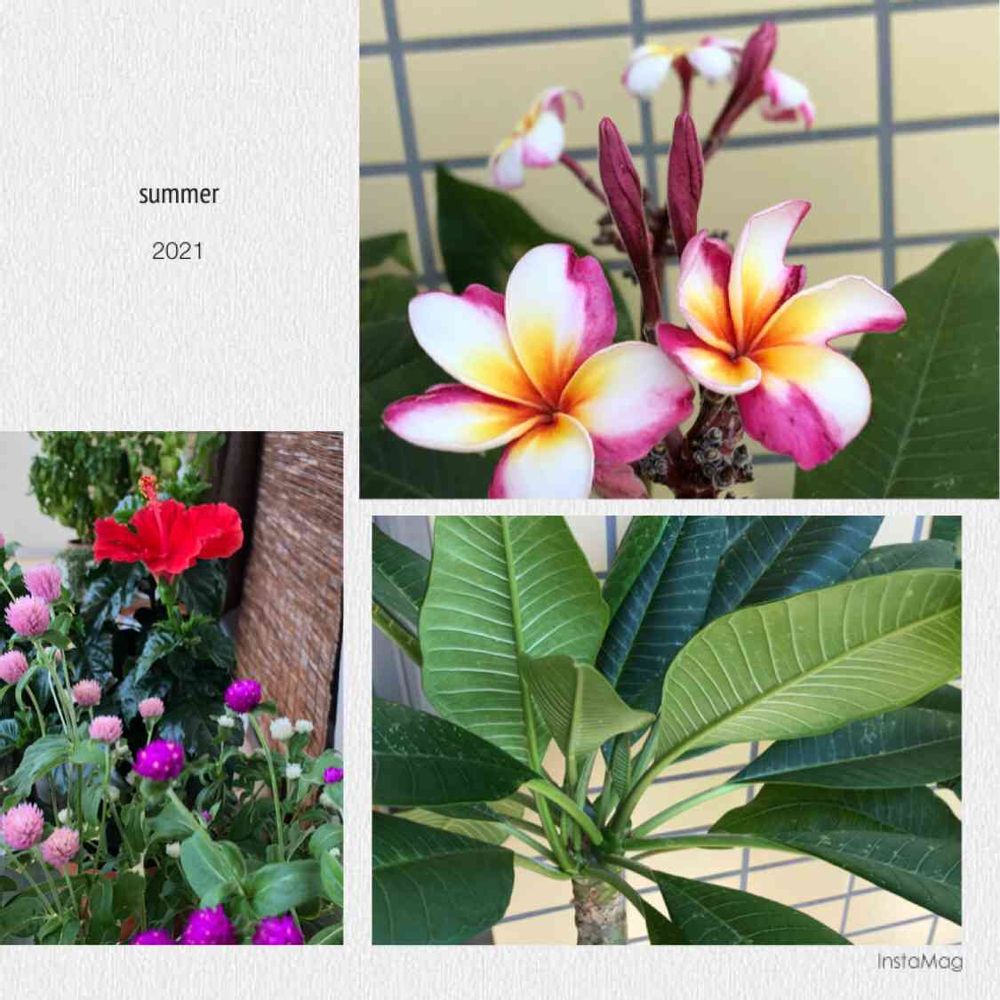 千日紅やハイビスカス🌺など夏のお花が咲いていて素敵ですね🥰🌿