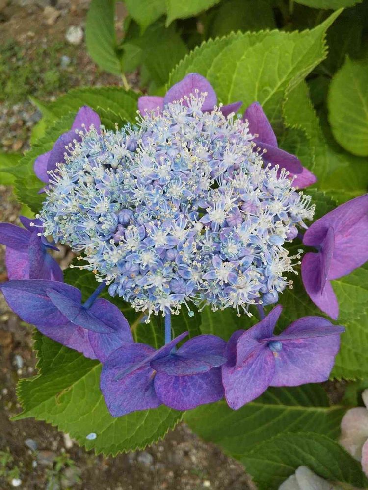 夜空を華やかな彩りで彩る、花火を連想させてくれる額紫陽花の華やぎ素敵ですね〜!😃