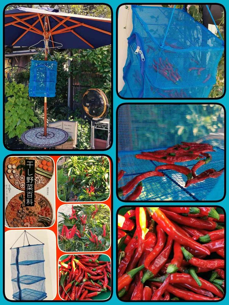 赤くなってきたから初めて干してます。『干し野菜百科』も参考にしてみました!