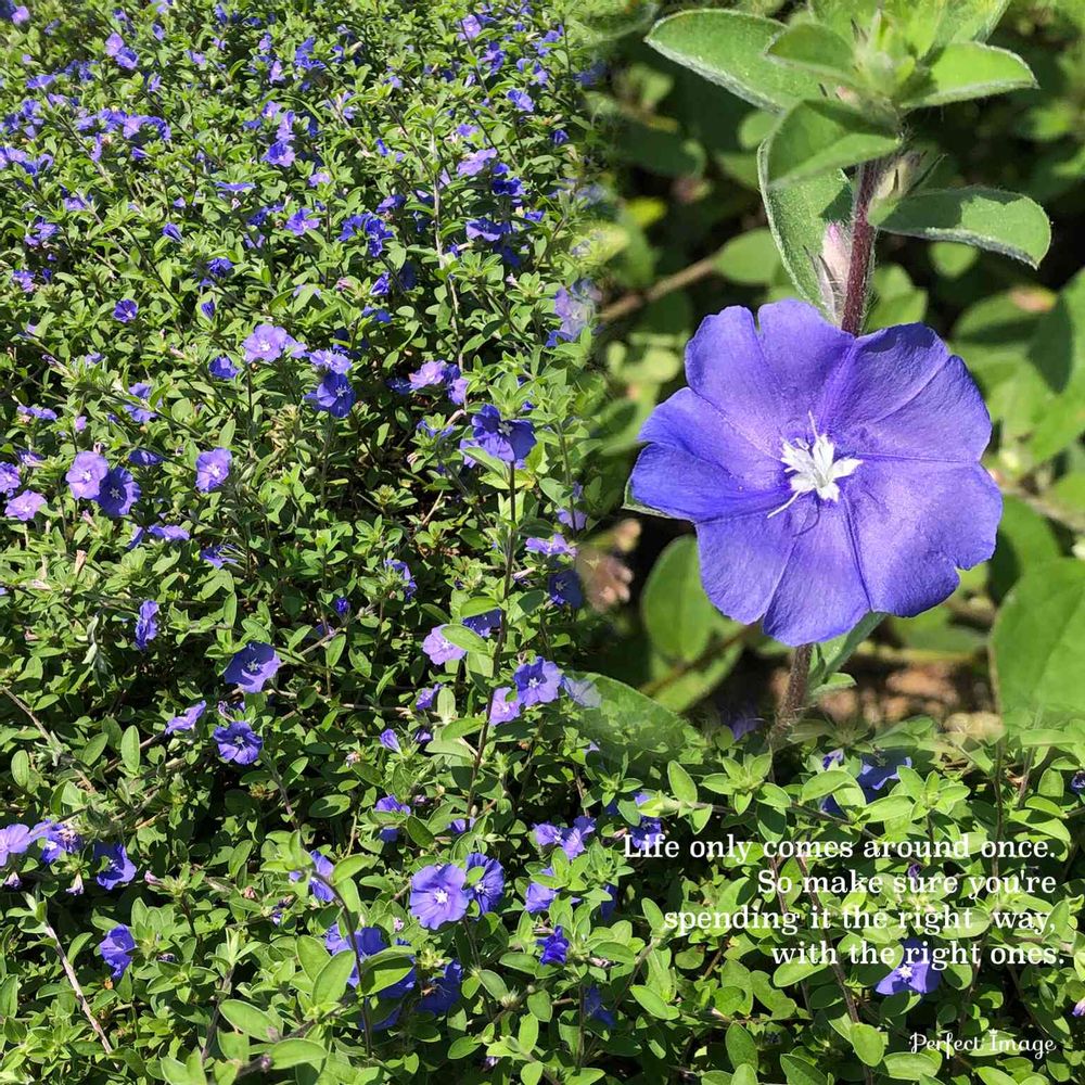 アメリカからはじめて輸入するときに名前がわからず、「アメリカ原産の青い花」ということで「アメリカンブルー」と日本では呼ばれるようになりました。学名は「エボルプルス・ピロスス」といい、アメリカでは「ブルー・デイズ」という名称で知られます。(ネットより)
