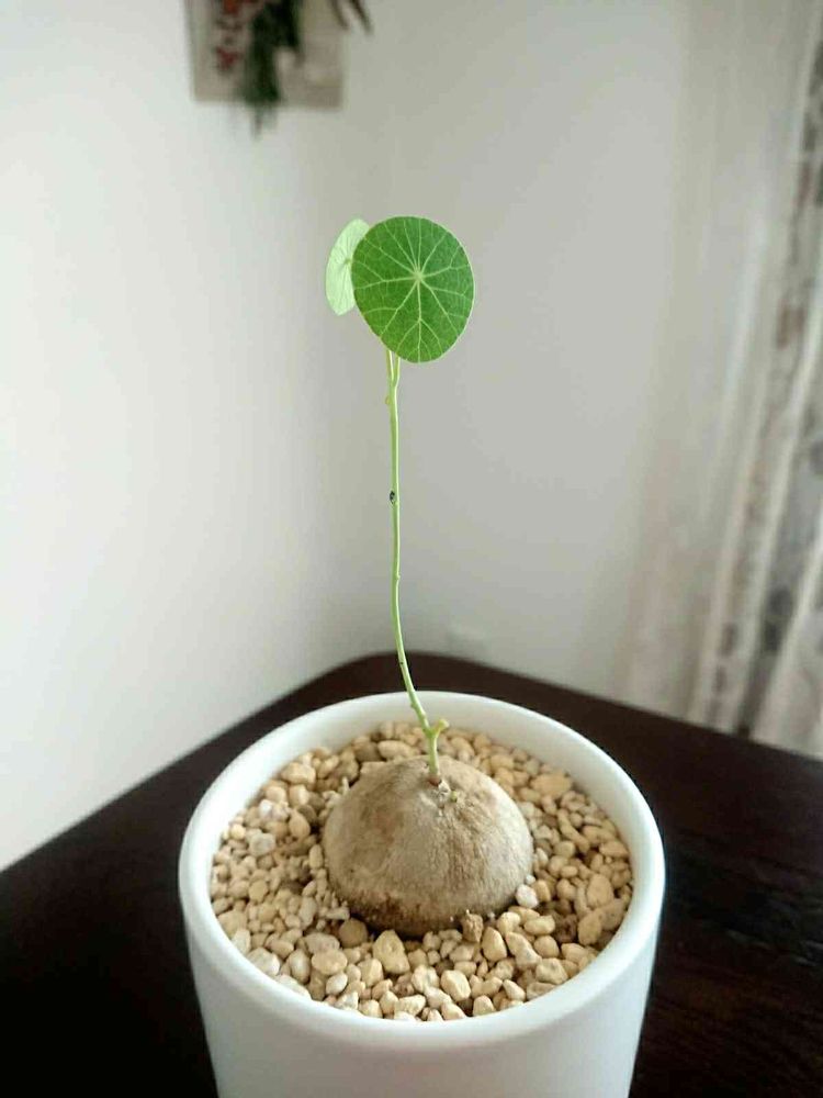 前の投稿から約1ヶ月、まるい葉が育ってきました。
