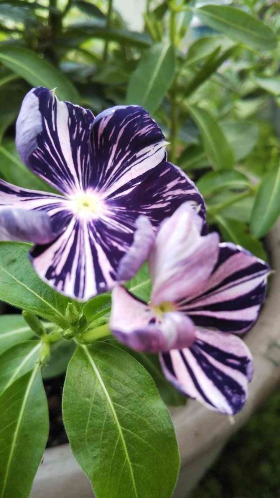 mimozaさんの小さな庭,ニチニチソウ,ニチニチソウ 藍染め絞りの投稿画像