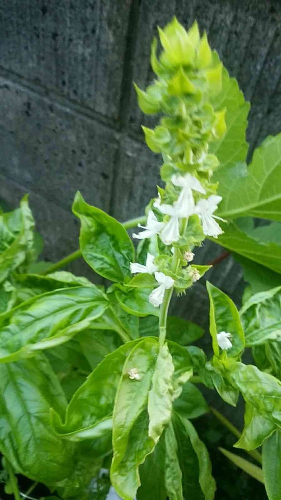 バジルに白い花咲く時期。親戚のしそのごとく種沢山付くかな