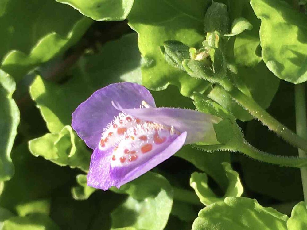 36℃の中、庭のムラサキサギゴケ(開花期3月〜5月くらい)が咲いています💜びっくりです‼️