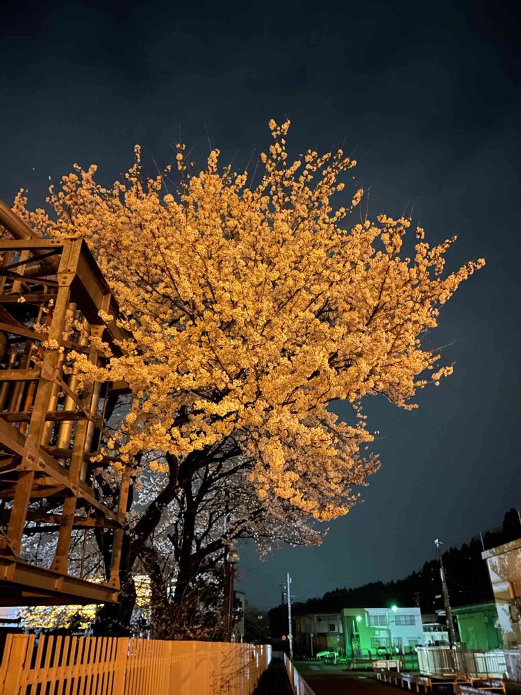 2021.4 会社の道路側に咲く桜の夜バージョンです。照明が映えて、さくらの雰囲気が変わりました。