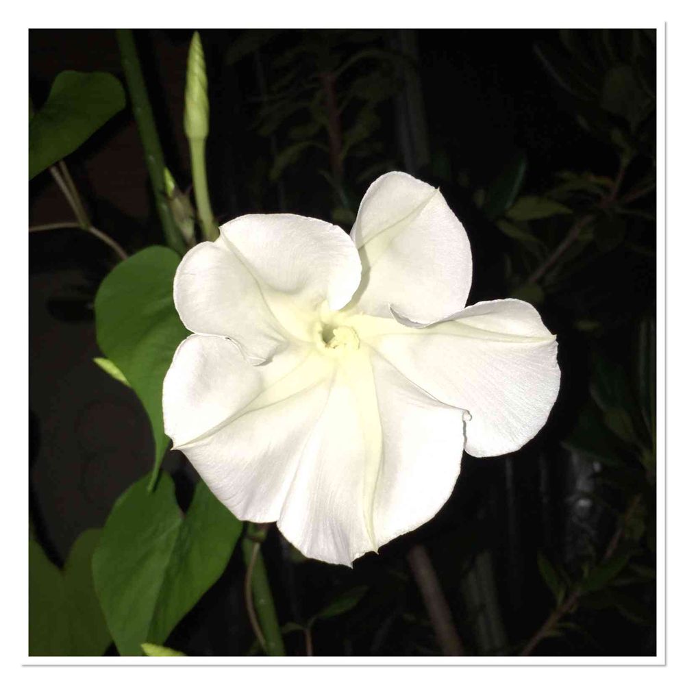 朝にはしぼんでしまうらしいのでフラッシュたいて撮った夕顔