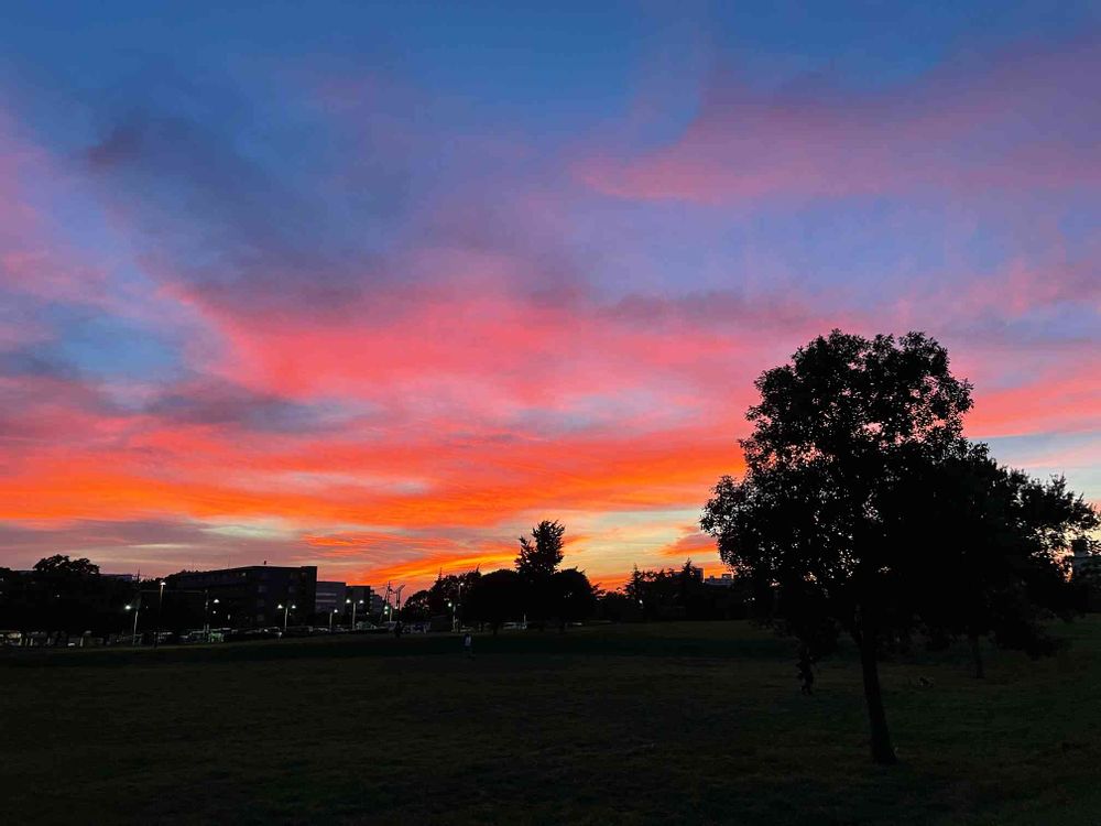 窓の外が真っ赤だったので、慌てて公園に行きました。