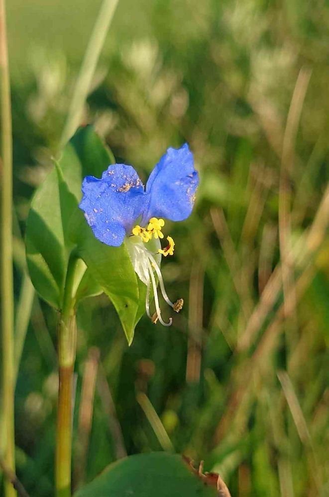 花弁は3個あり、下方の1個は白くて小さく、上側方の2個は青く大きくて目立ちます💙