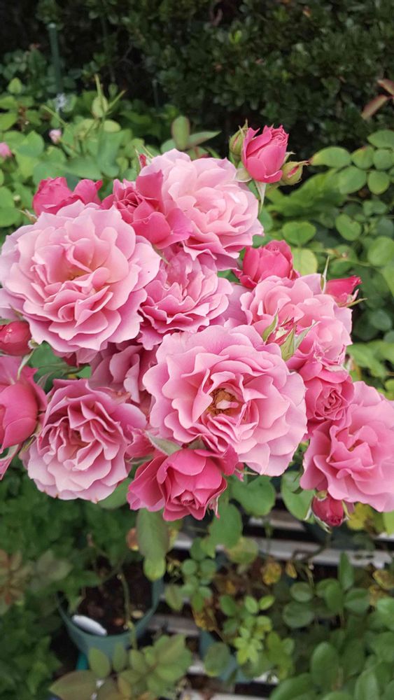 大苗で10号鉢で育てています。この一枝だけが沢山の花🌹を付けて咲いているんですよ。😃🎶