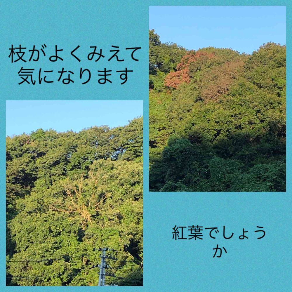 右は紅葉だと思いますが左側の枝が目立つ木が気になります