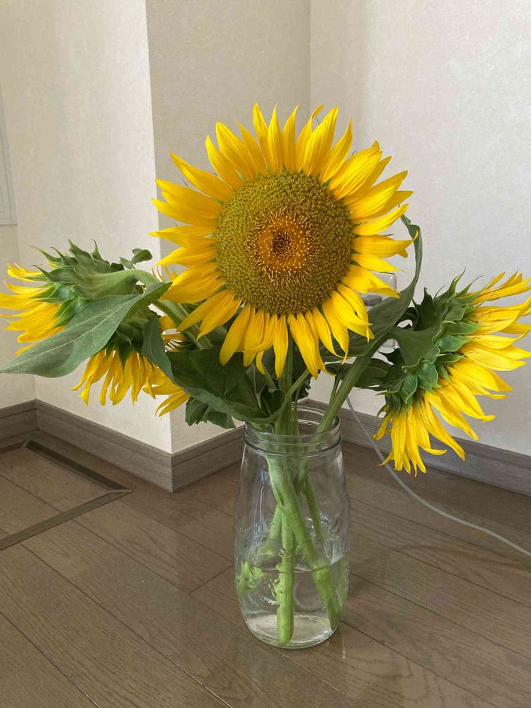 ミニひまわりを見ると、オリンピックの副賞として贈られていたビクトリーブーケ💐を思い出します(^^)