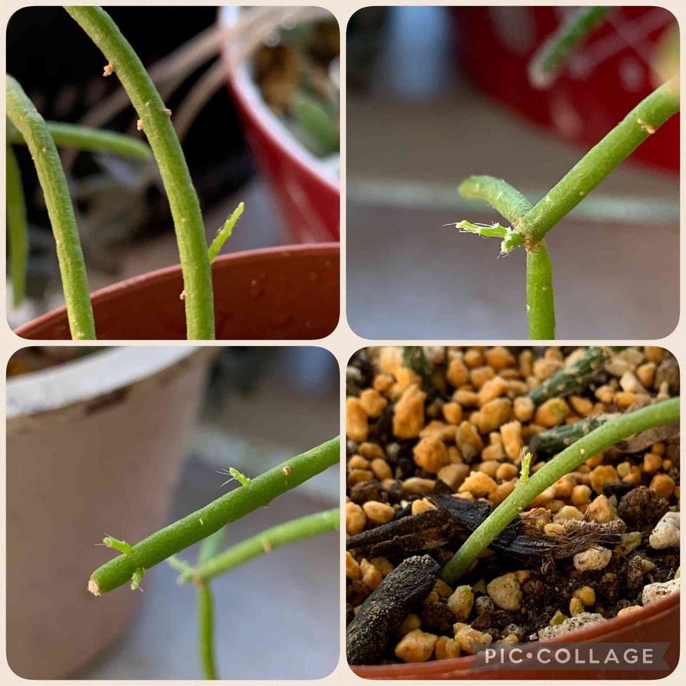 挿し木していたリプサリス🪴根付いた様子🥰節の途中からも新芽が出るなんて思わなかった😆✨