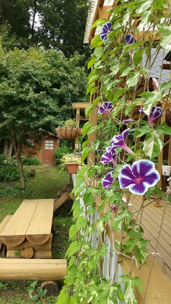 斑入りの朝顔、涼しげで綺麗ですね😊💜🌿