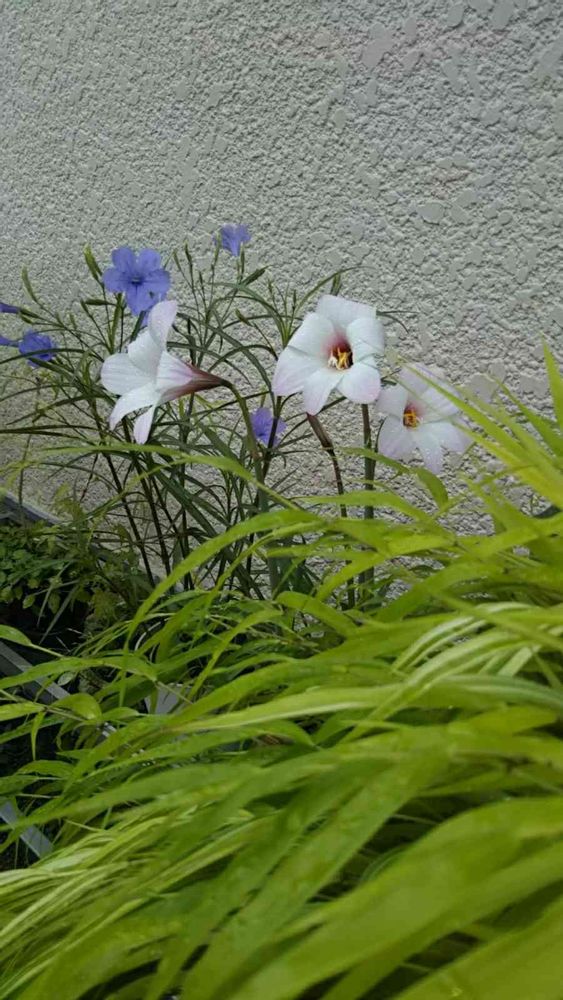 暑さに負けず、ゼフィランサス、柳葉ルイラ草、フウチソウが、元気をくれています😃