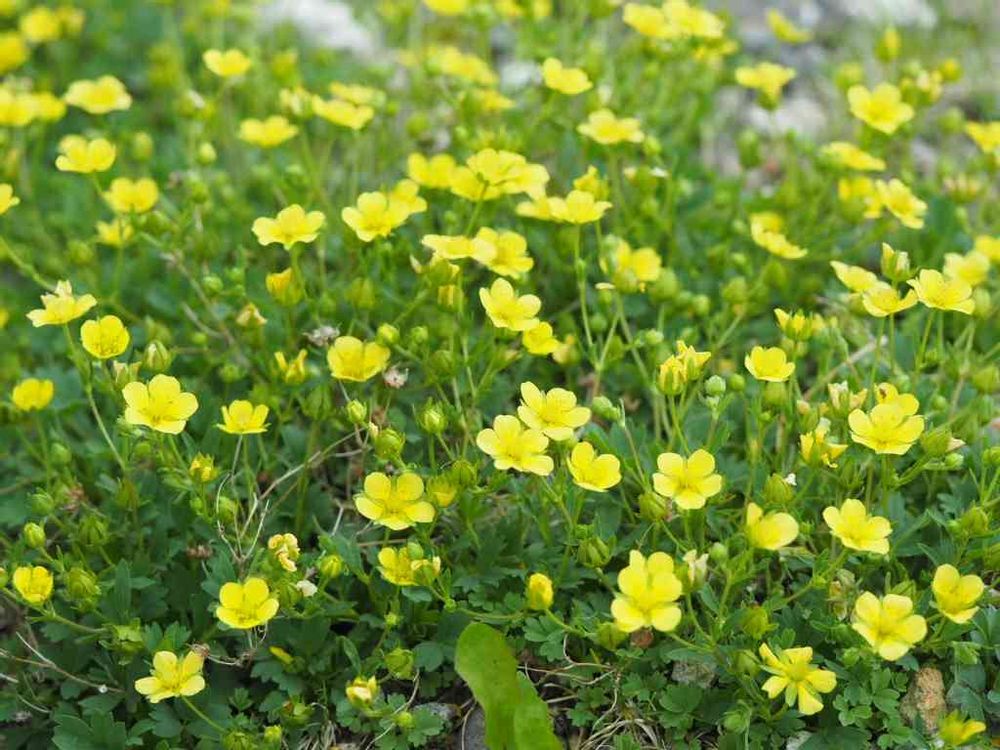メアカンキンバイの群落。爽やかな明るい黄色。